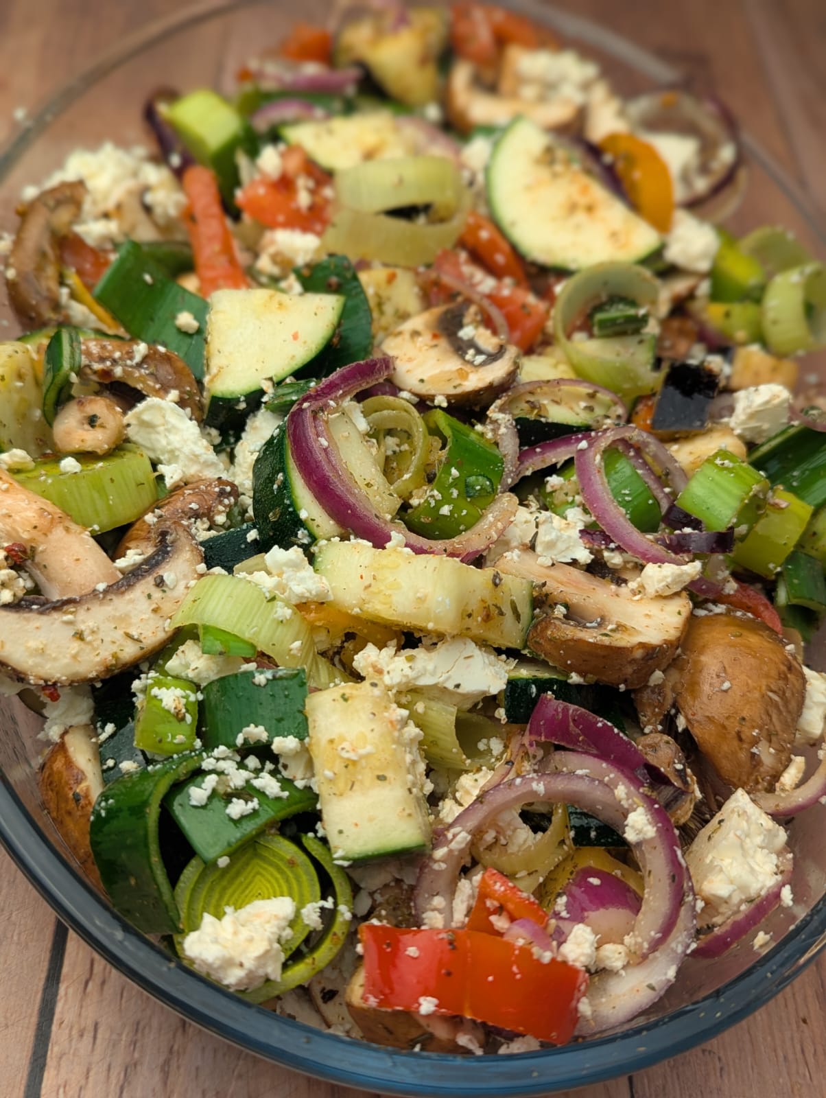 Jetzt kommt alles in den Backofen und wird bei etwa 170-180° 35-40 min gegart. Ich schaue mir immer das Gemüse an, ob es schon leicht bräunt, dann ist das Gericht fertig.