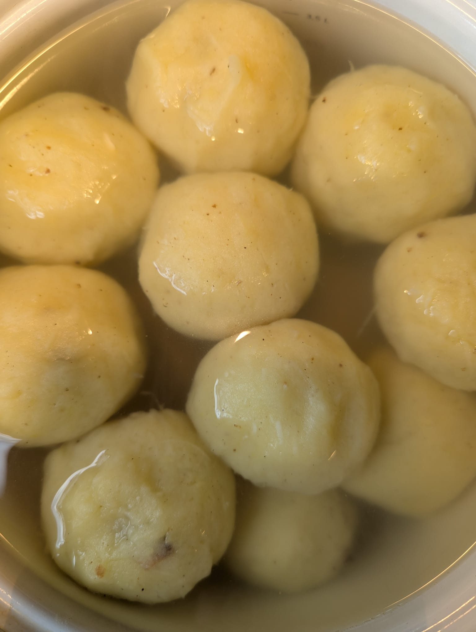 Früher gab es bei Oma jeden Sonntag die Klöße, entweder Stärkeklöße oder die echten Thüringer Klöße. Ich weiß noch wie ich als Kind auf der alten Schleuder saß und ordentlich durchgeschüttelt wurde, als dem Kloßschab so seine Flüssigkeit abgepresst, bzw. geschleudert wurde. Meine Oma hat immer riesige Klöße gemacht, und davon einen großen Topf voll. Der Kloßschab wurde in Kloßsäcke eingefüllt, verschlossen und ab in die Wäscheschleuder. Geschwefelt wurden sie auch, die Klöße, damit sie ihre schöne hellgelbe Farbe behielten.